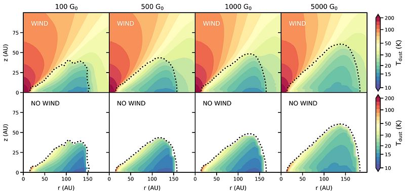 More fundamentally, this work challenges the traditional approach of treating externally irradiated disks as isolated disks plus a UV field. The wind isn't just a mass-loss mechanism, it's an integral component of the disk's physical and chemical structure, affecting temperatures, abundances, and observables in interconnected ways.